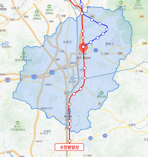 이번에 추가되는 역은 10개로 성남시에 포함되어있는 구간입니다.