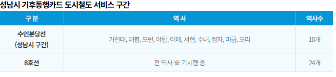 거쳐 성남시에 기후동행카드가 적용되면, 적용 중인 8호선 전 역사(24개) 뿐만 아니라