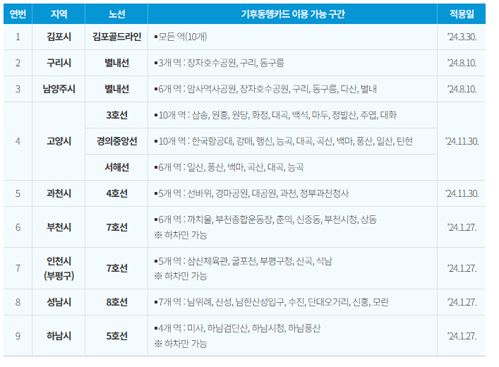 3. 서울 외 기후동행카드 이용가능 도시철도 구간