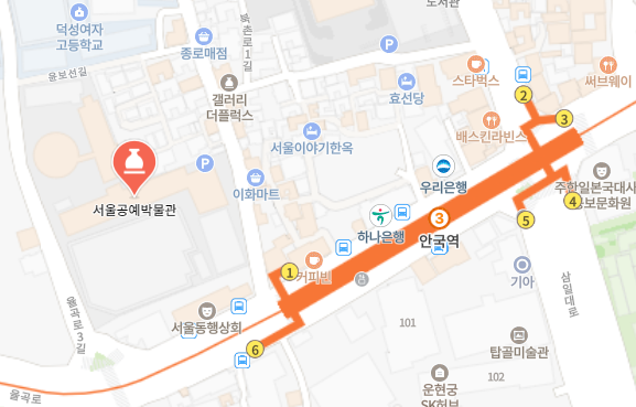 109,151,162,171,172,272,710번 버스 안국역 6번출구.인사동정류장