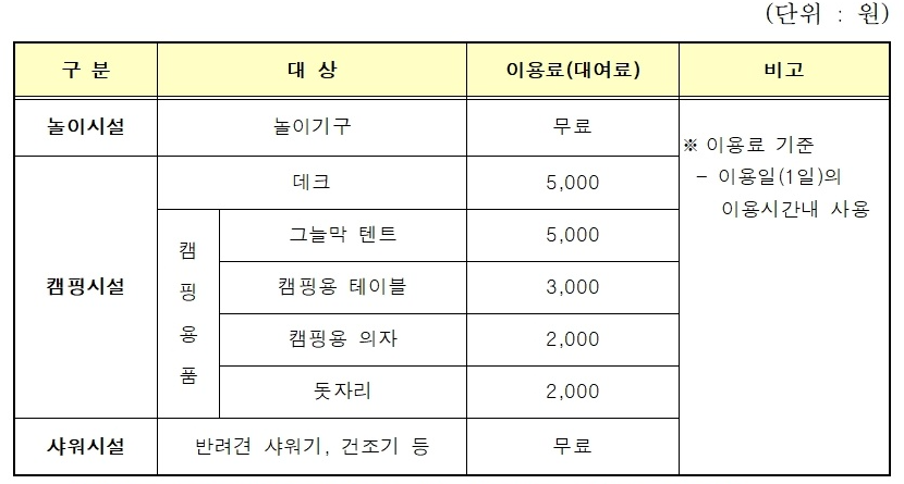 3. 마포 반려동물 캠핑장 이용료
