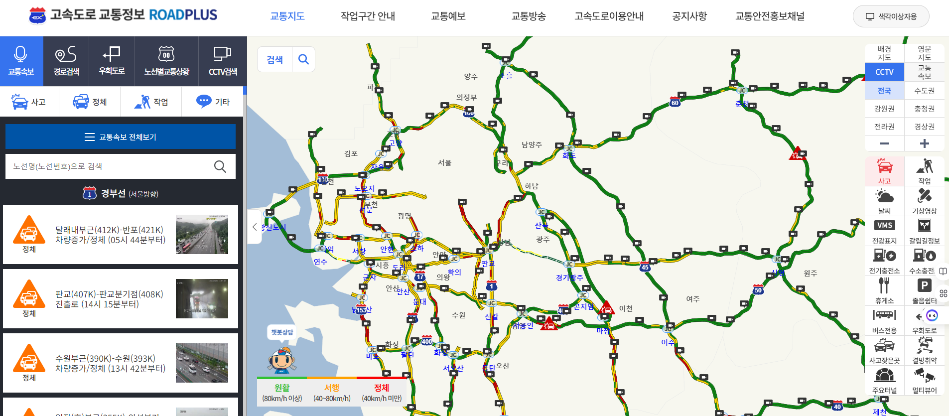 고속도로 상황을 보면서 지나가는 구간의 교통량을 확인해보고 싶으시면 CCTV