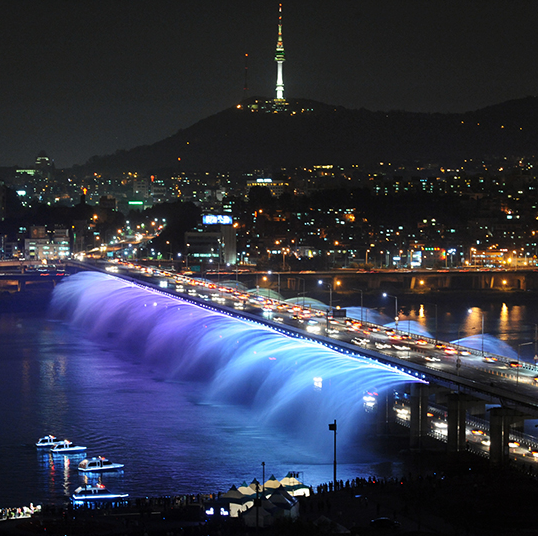 분수를 비롯한 빛으로 수놓는 장관을 경험할 수 있는 ‘잠수교’와 ‘달빛무지개분수’로 구성되어